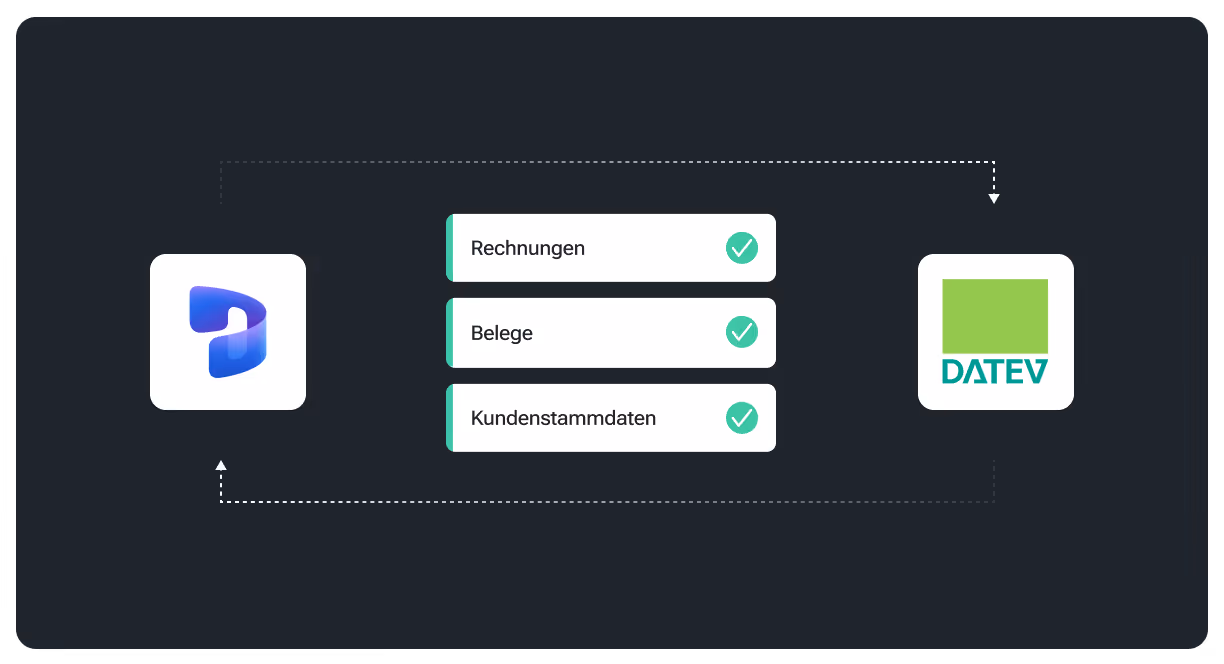Dynamics 365 lässt sich nahtlos mit DATEV verbinden. Rechnungen, Belegeund Kundenstammdaten fließen automatisch in Deine Buchhaltung - ohnedoppelte Erfassung, ohne Medienbrüche.